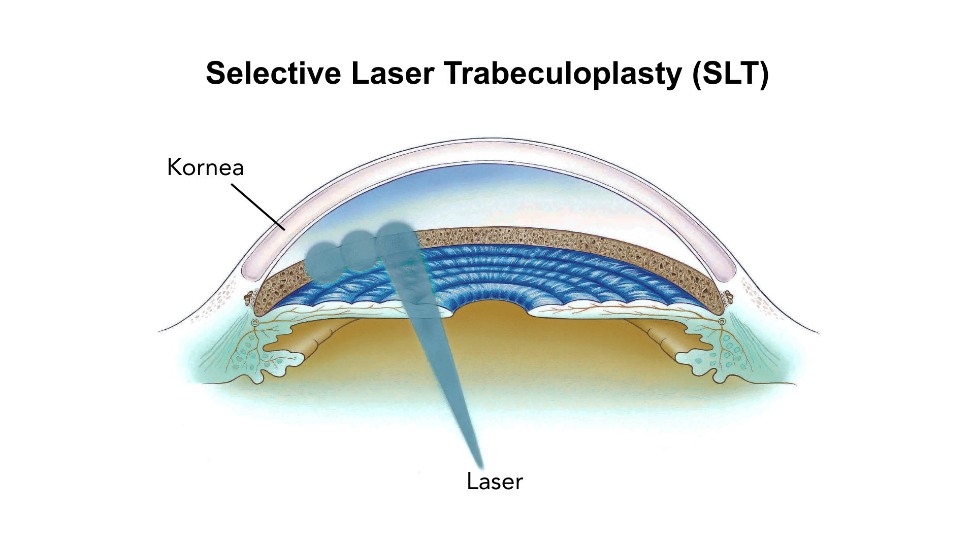 Selective Laser Trabeculoplasty is a laser treatment that improves fluid outflow through the natural drainage pathway. It can be used as a primary treatment in some patients or as an adjunct to reduce reliance on medications.