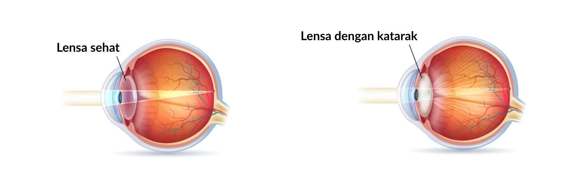 Katarak terjadi ketika lensa mata yang seharusnya jernih menjadi keruh, sehingga cahaya yang masuk ke retina berkurang. Akibatnya, fokus penglihatan tidak lagi tajam dan penglihatan perlahan berubah. Katarak biasanya berkembang secara bertahap, awalnya hanya keluhan ringan, namun semakin lama semakin terasa gejalanya.
